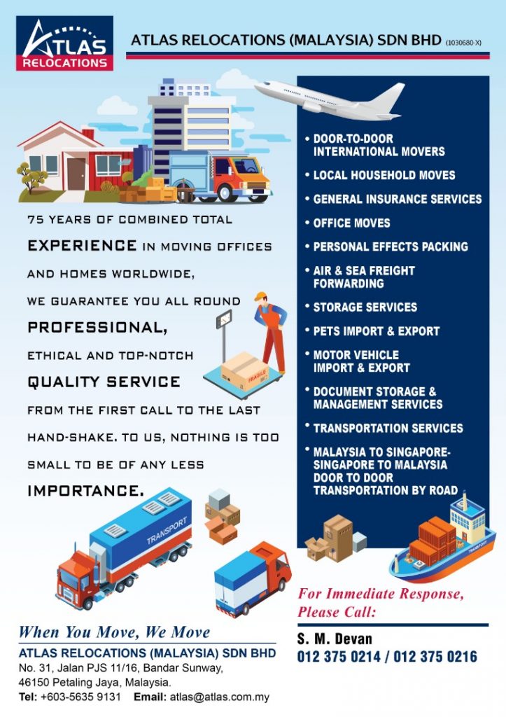 Atlas International Movers is one of the premier International moving companies in Malaysia, based in Subang Jaya, If you are considering moving or relocating to Malaysia, we can provide information and services specific to expatriates, expatriate families and companies moving or relocating to Malaysia.
